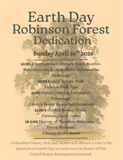 Earth Day Celebration & Robinson Forest Dedication Sunday April 26th, 2026, 10:30am - 1pm